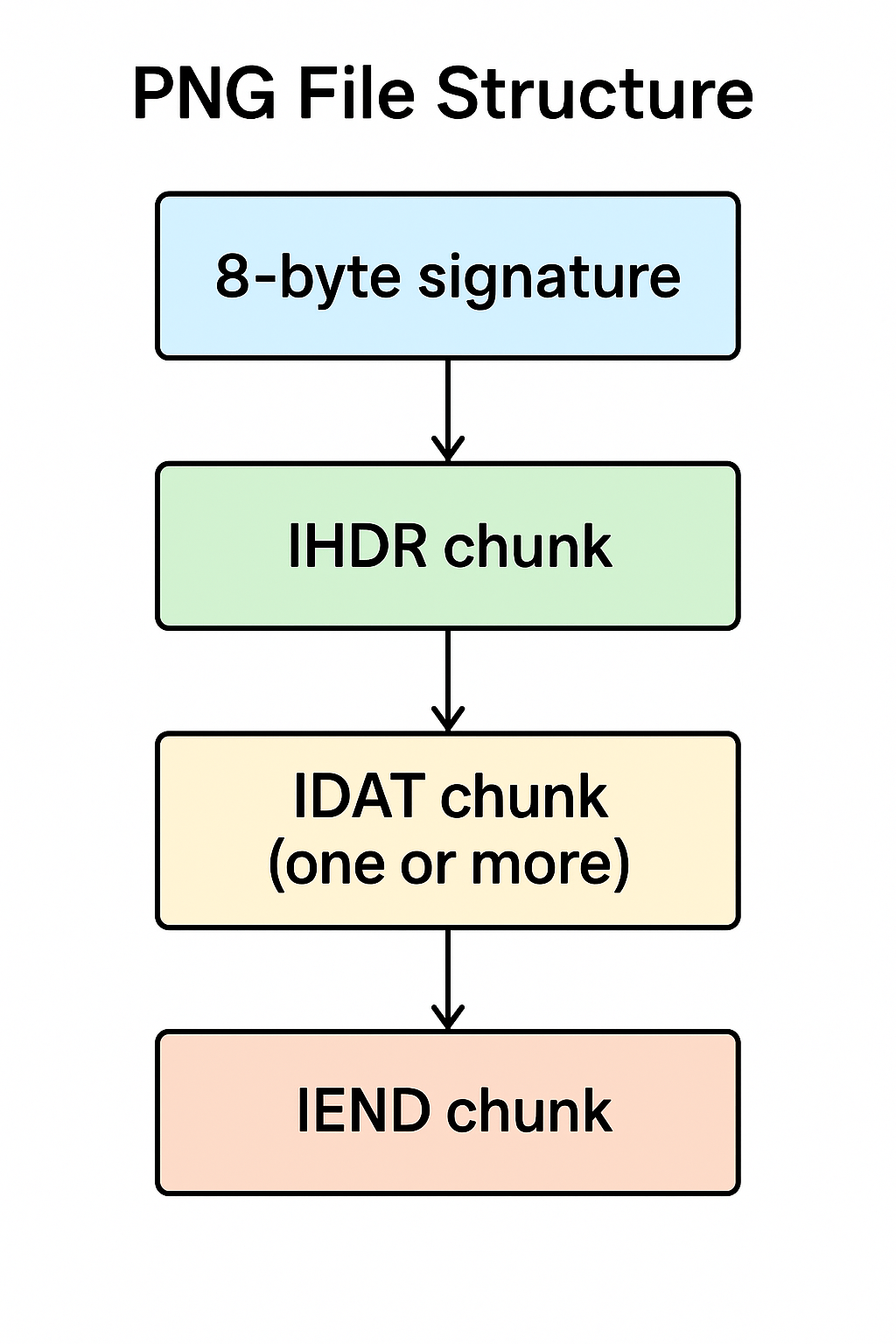 모든 PNG 파일은 고정된 시그니처로 시작되며, 파일 형식을 식별하는 데 사용된다.